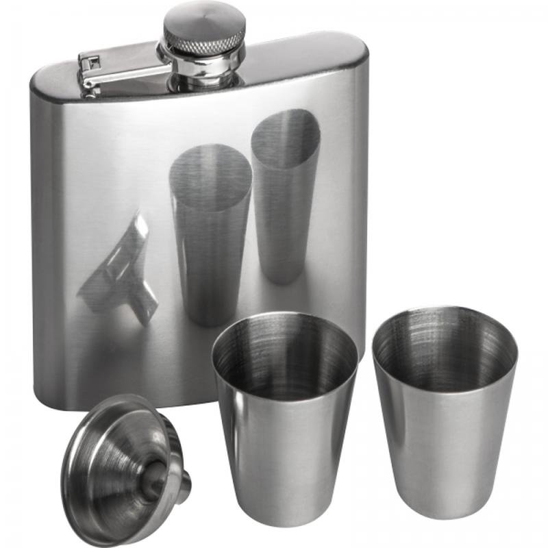 Piersiówka 220 ml, kieliszki 30 ml, lejek