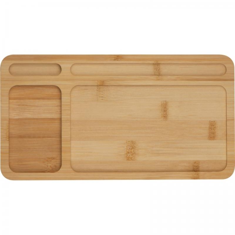 Bambusowy organizer na biurko, ładowarka bezprzewodowa 5W