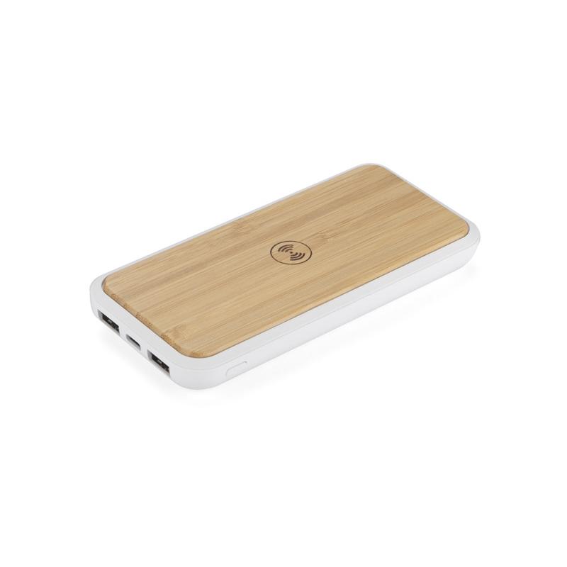 Bambusowy bezprzewodowy power bank 8000 mAh, ładowarka bezprzewodowa 5W