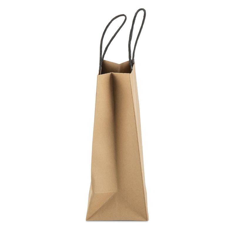 Torba papierowa PAKLO w rozmiarze średnim to klasyczne, estetyczne opakowanie wykonane z mocnego papieru kraftowego o gramaturze 200 g. Posiada skręcane uchwyty z czarnego papieru, które dobrze komponują się z naturalnym kolorem torby i zapewniają wygodne przenoszenie. Dzięki prostej formie idealnie sprawdza się jako torba prezentowa lub opakowanie firmowe na materiały promocyjne i drobne zestawy upominkowe. Produkt można znakować, dopasowując go do identyfikacji marki.