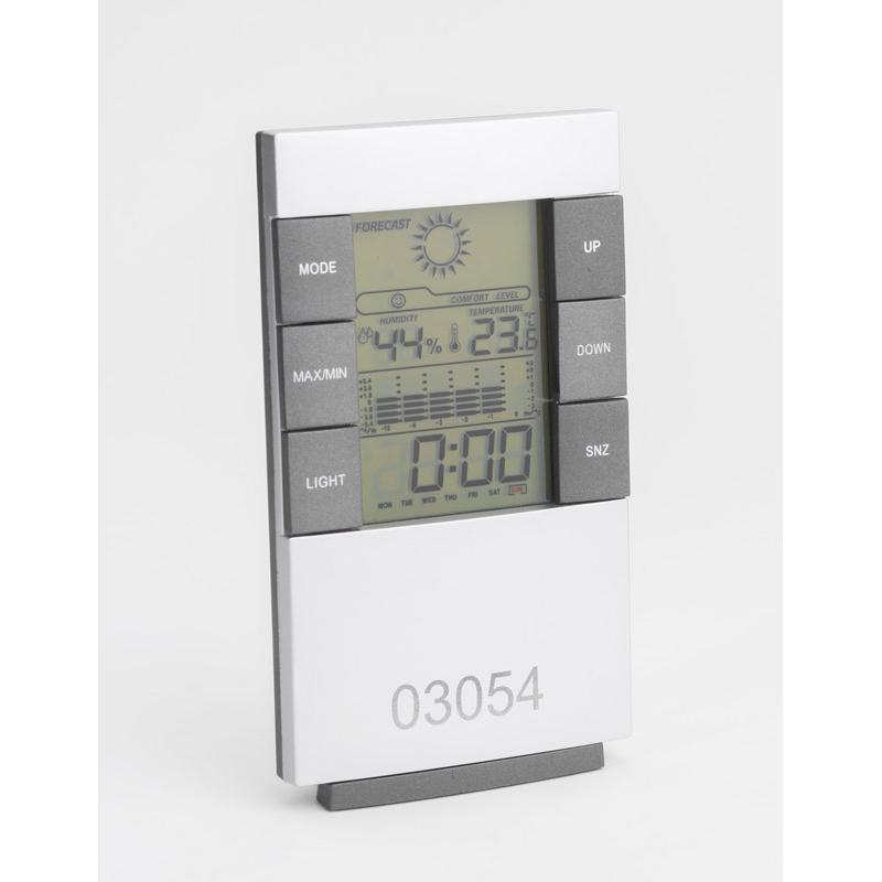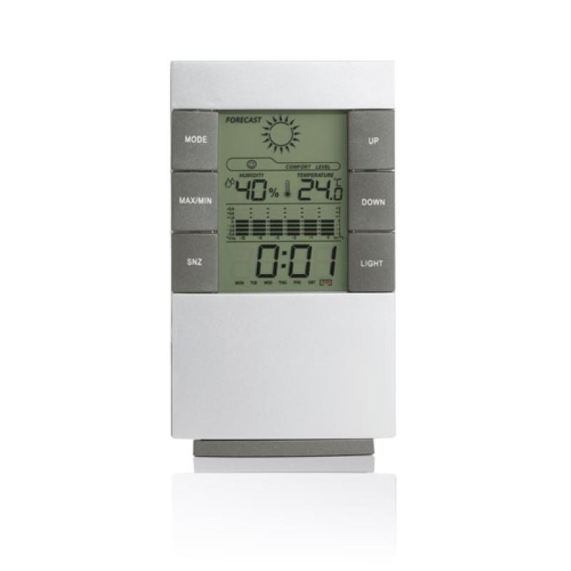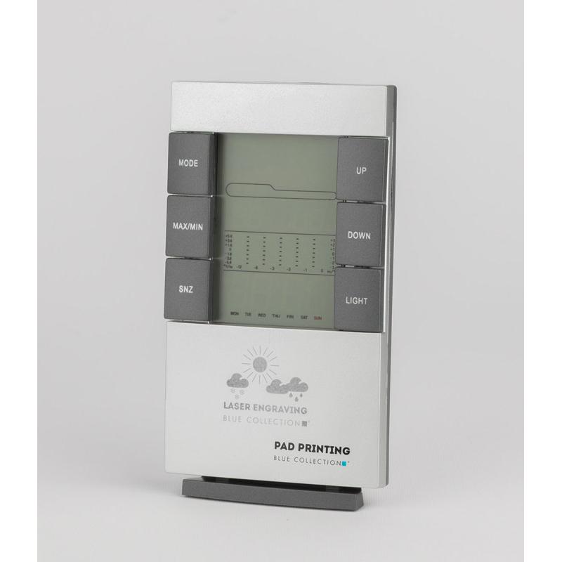 Używając tej nowoczesnej stacji prognozowanie pogody nie będzie już stanowiło problemu. Stacja posiada następujące funkcje:termometr (max/min), higrometr (max/min), zegar z budzikiem, kalendarz, biometr, przewidywanie pogody, podświetlenie ekranu. Logo nadrukujemy lub wygrawerujemy z przodu produktu.