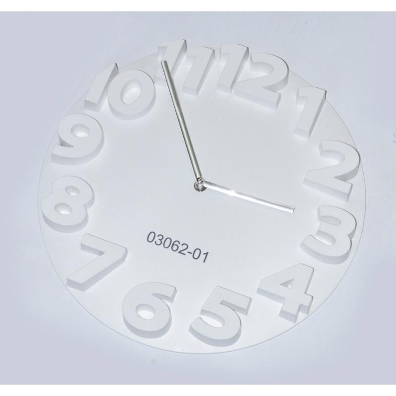 Duży zegar o nowoczesnym wyglądzie. Dzięki wypukłym cyfrom godzina jest bardzo dobrze widoczna.