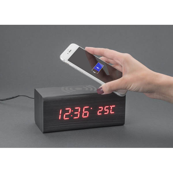 Zegar CORNELL to połączenie cyfrowego zegara w stylowej obudowie z ładowarką indukcyjną. Jest to gadżet, który świetnie wygląda na biurku, a ponadto jest bardzo praktyczny. W zestawie kabel do zasilania. Zegar wyposażony w funkcję kalendarza, budzika i temperatury.