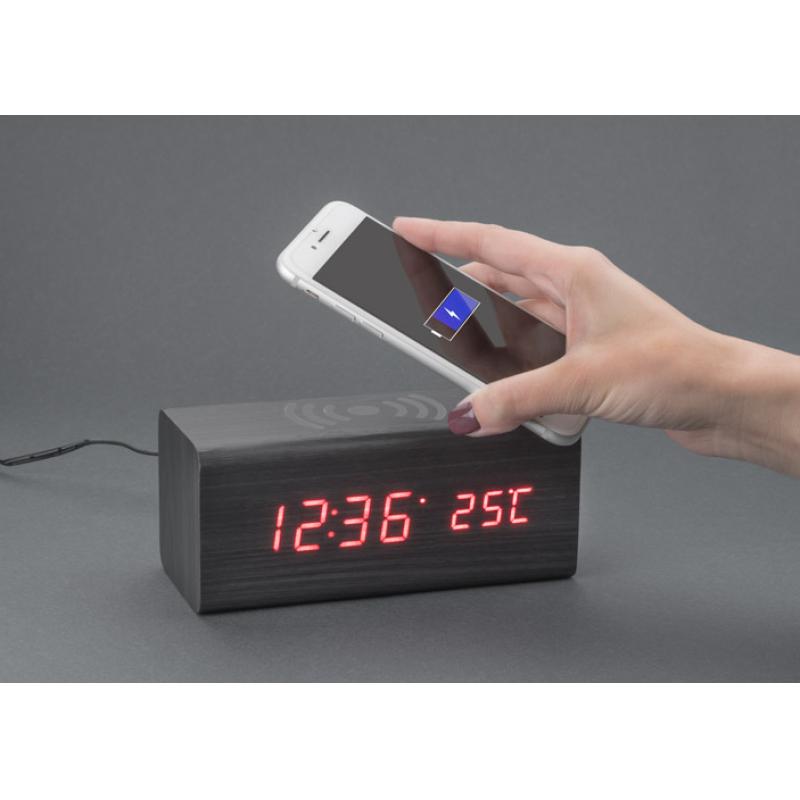 Aby korzystać z ładowania indukcyjnego należy podłączyć urządzenie za pomocą dołączonego kabla (przy zasilaniu bateryjnym działa tylko zegar).