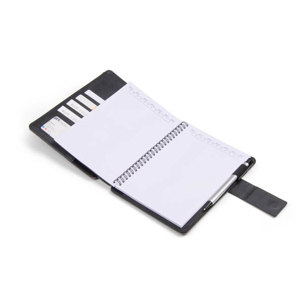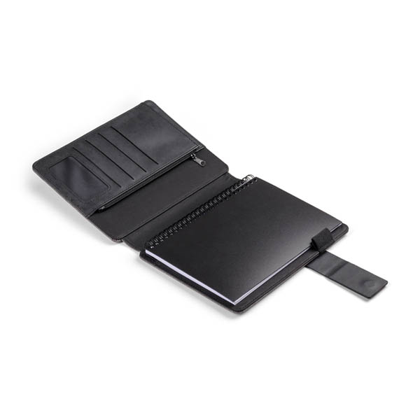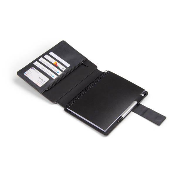 Wykonane z lnu zewnętrzne pokrycie teczki CARLIS posiada dwie kieszonki na telefon i pamięć USB. W środku znajduje się wymienny notes A5 (50 kartek w linie), duża kieszeń zamykana na zamek, miejsce na długopis oraz 4 małe kieszonki w tym 1 z okienkiem. Teczka zamykana jest za pomocą magnetycznego zatrzasku. Umieszczona na zatrzasku metalowa płytka pozwala na wykonanie efektownego grawerowania, który z pewnością podkreśli elegancki charakter teczki.