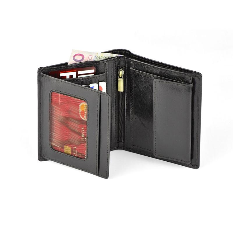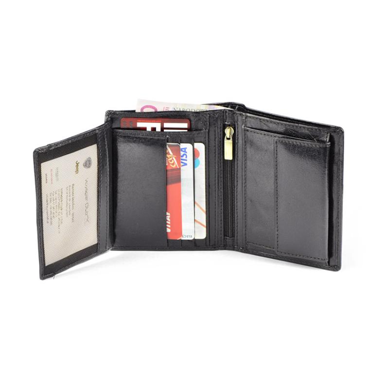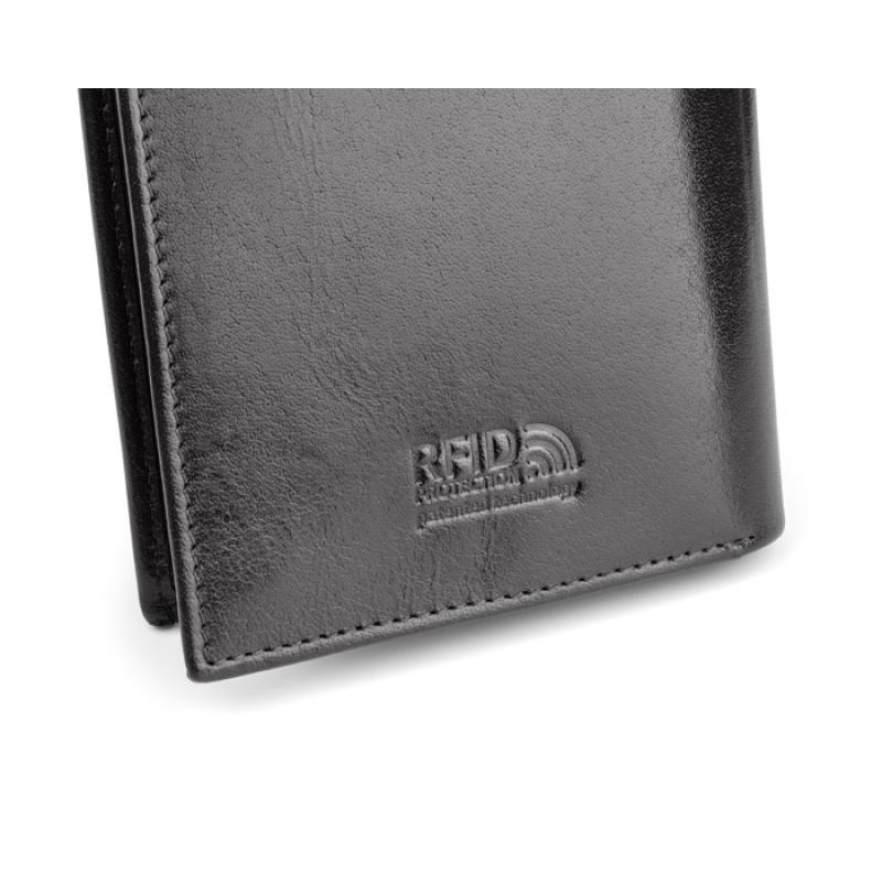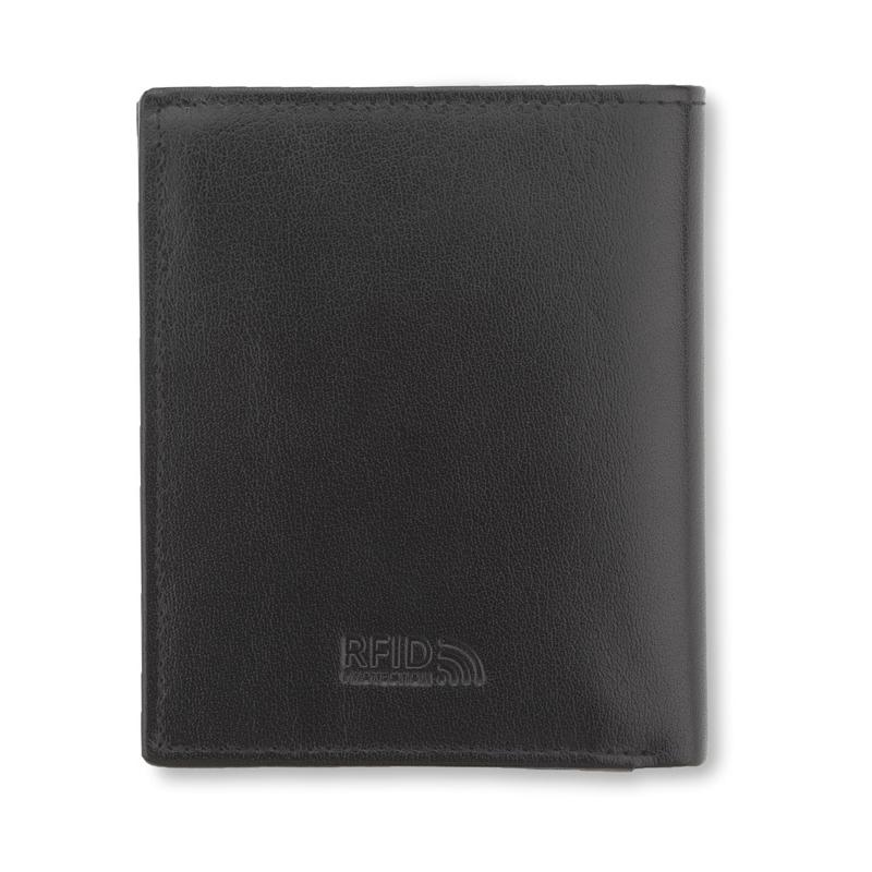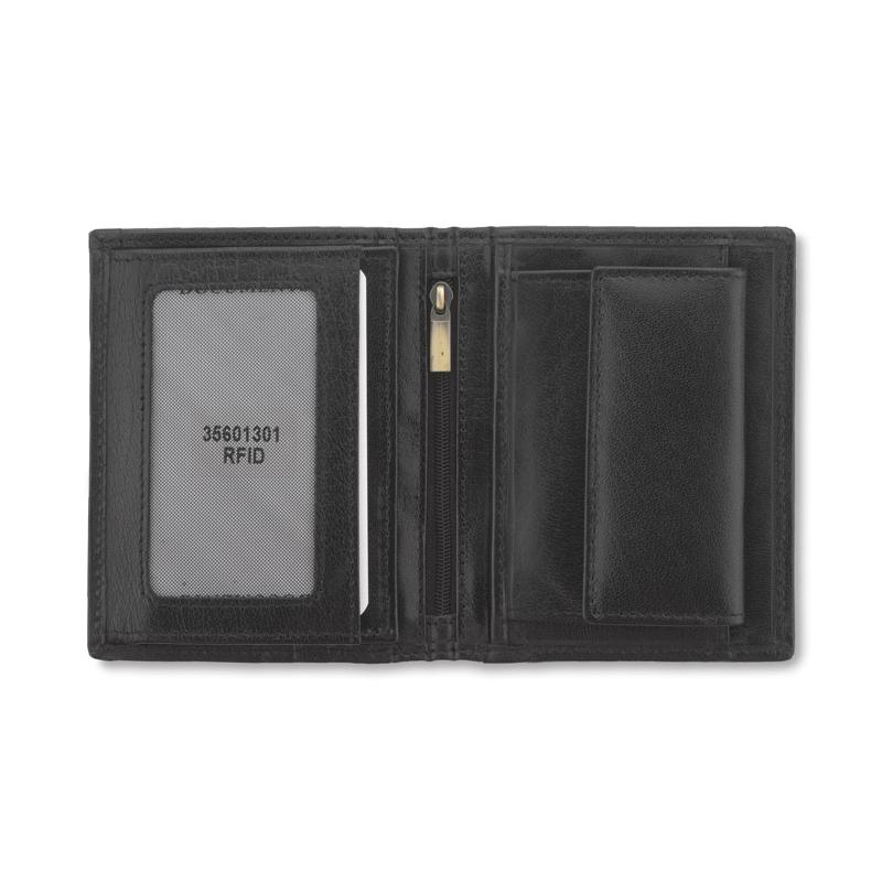 Portfel wyposażony w miejsce na bilon, 2 kieszenie na banknoty, 4 miejsca na karty kredytowe, 5 kieszeni na dokumenty, kieszeń zapinaną na suwak. Portfel pakowany w drewaniane pudełko. Dodatkowo portfel wyposażony jest w folię zabezpieczającą przed kredzieżą danych z kart kredytowych, blokując sygnał RFID. Logo wykonamy metodą tłoczenia lub grawerowania.