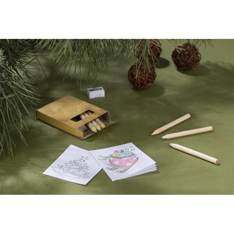 SANTI to uroczy upominek na święta. Zestaw składa się z kredek w 6 kolorach, 8 stron kolorowanek ze świątecznymi motywami oraz temperówki. Wszystko zapakowane w niewielkich rozmiarów papierowy kartonik. Ten drobiazg na pewno umili najmłodszym oczekiwanie na świąteczny czas.