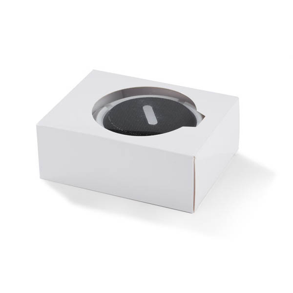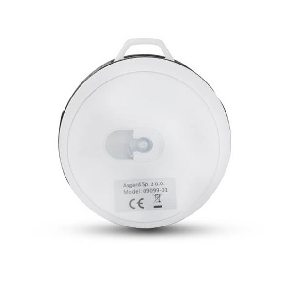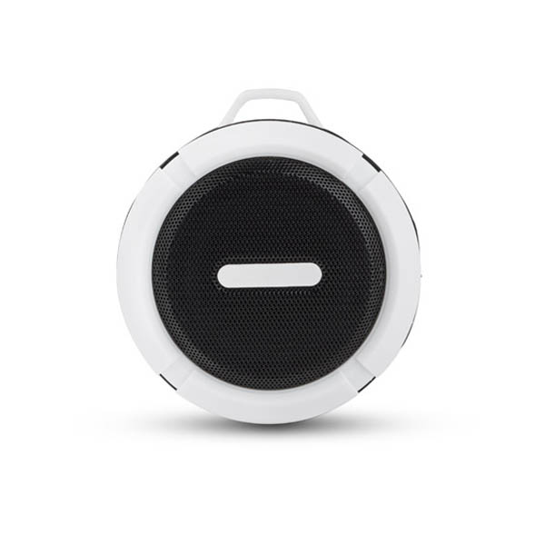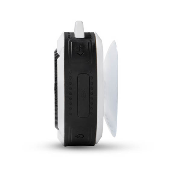 Mały głośnik z przyssawką posiadający klasę wodoszczelności IPX4, czyli całkowitą ochronę przed spryskiwaniem i zachlapaniem wodą z różnych kierunków z natężeniem do 10 litrów na minutę. Świetnie nadaje się do użytku turystycznego i na co dzień np. przy lekkim deszczu. Możliwość wykorzystania głośnika jako zestawu głośnomówiącego. Odtwarzanie muzyki jest możliwe za pośrednictwem bluetooth (wersja 4.2) lub karty micro SD. W zestawie kabel do ładowania z końcówką microUSB i karabińczyk. Posiada metalową płytkę przeznaczoną do wykonania znakowania. Produkt jest zgodny z odpowiednimi dyrektywami Unii Europejskiej oraz posiada znak CE. Dane techniczne: Moc wyjściowa: 3W x 1 Napięcie: 5V Stosunek S/N: ≥ 70 dB, czas pracy: 1-1,5 godziny, pojemność baterii 300mAh