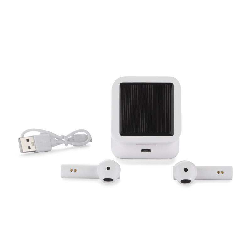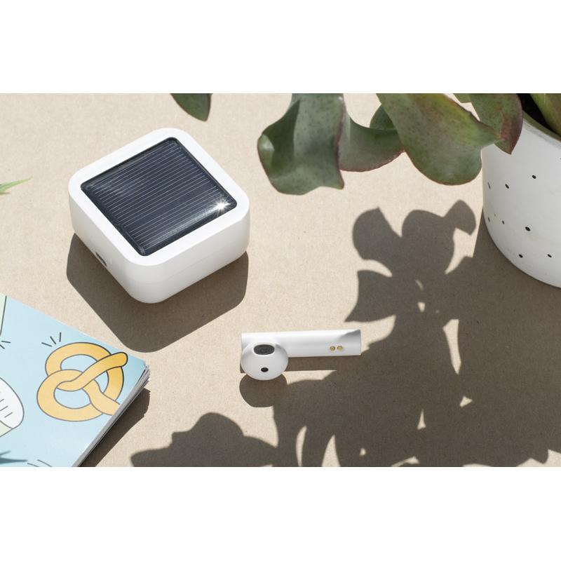 Słuchawki bezprzewodowe SUONO charakteryzują się bardzo dobrą jakością dźwięku i wygodą ze względu na doskonałe wyprofilowanie. Poręczne etui służy również jako stacja ładująca. Można je zasilać tradycyjnie poprzez ładowakę lub korzystając z panelu solarnego. Pojemność akumulatora to 200mAh do naładowania którego wystarczy około 5-6 godzin na słońcu. Pojemność słuchawek to 30mAh, które wystarczy na około 2 godziny czasu pracy. Wbudowany mikrofon pozwala na prowadzenie rozmów telefonicznych, a umieszczone na słuchawkach przyciski pozwalają na pauzowanie, przewijanie utworów, jak i na wezwanie asystenta głosowego. Wyświetlacz wskazuje na stopień naładowania baterii, jak i powiadamia nas o rozpoczęciu ładowania słuchawek. Zgodność z bluetooth 5.0, możliwość używania tylko jednej słuchawki.