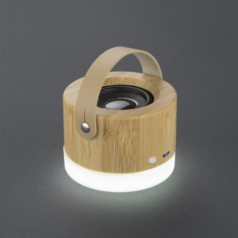 RORAT to wielofunkcyjny i designerski głośnik. Wykonany z bambusa tworzywa z wygodnym paskiem z ekoskóry, który pozwala go używać w każdych warunkach. Wbudowana na spodzie lampka zmienia urządzenie w ciekawą ozdobę jaki i zapewnia światło np. pod namiotem. Odtwarzanie muzyki za pośrednictwem bluetooth (wersja 5.0). Produkt jest zgodny z odpowiednimi dyrektywami Unii Europejskiej oraz posiada znak CE.