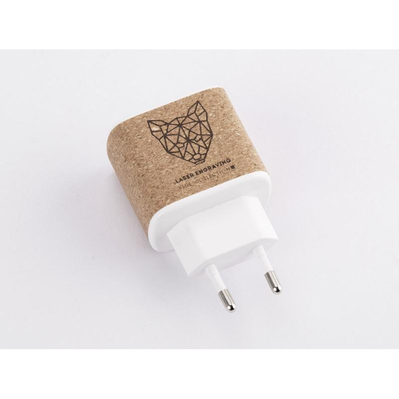 Ładowarka sieciowa BLOSETO to praktyczny gadżet umożliwiający ładowanie urządzeń mobilnych za pomocą wbudowanego portu USB-A i portu typu C. Ładowarka posiada funkcję szybkiego w standardzie QC 3.0. ładowania o mocy 20W. Wykończona jest korkiem dzięki czemu prezentuje się nietuzinkowo.