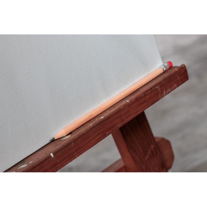Drewniany ołówek HB z gumką do ścierania, niezatemperowany.