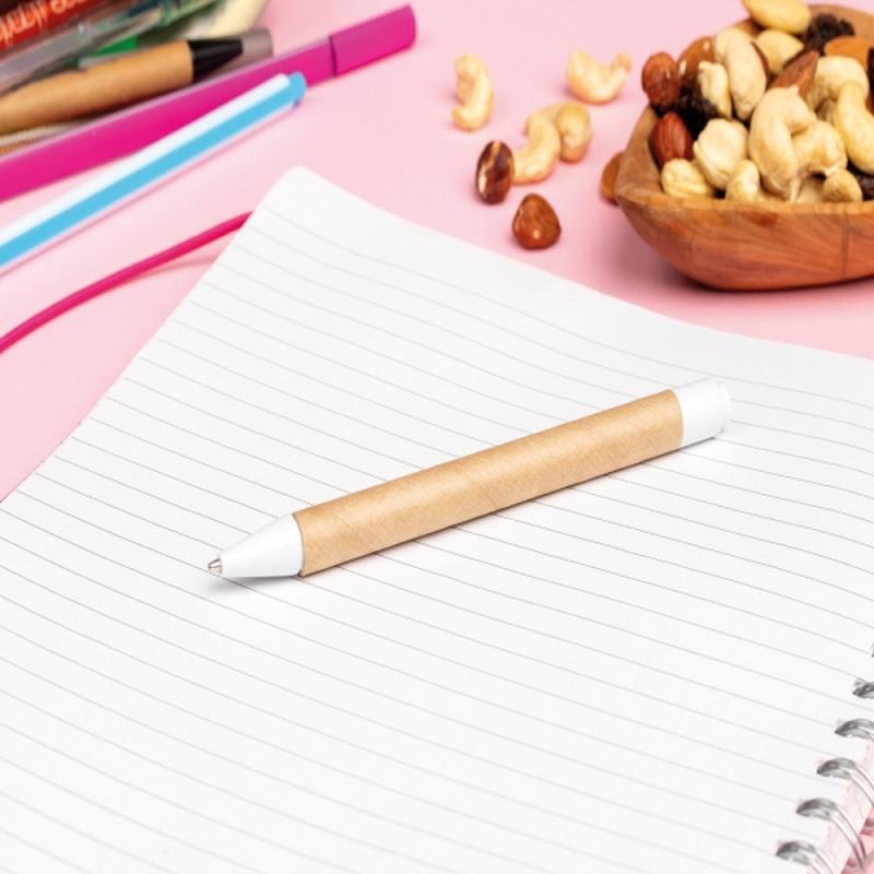 Długopis wykonany z tektury pochodzącej z recyklingu. Posiada wkład piszący na niebiesko.