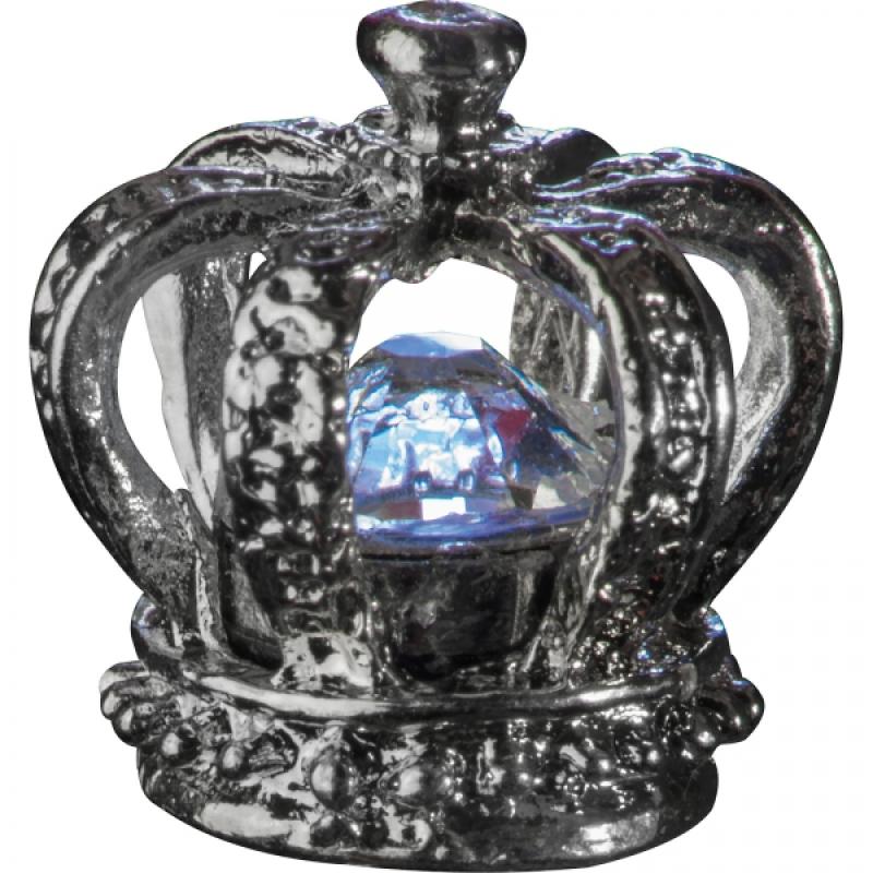 Metalowy długopis z mechanizmem obrotowym, zakończony koroną i kryształkiem Swarovskiego. Wkład pisze na niebiesko.