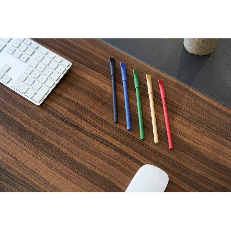 Ekologiczny długopis tekturowy z wkładem piszącym na niebiesko.