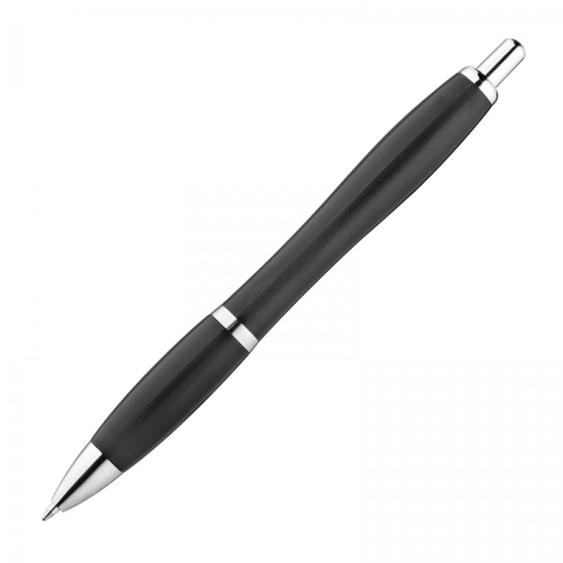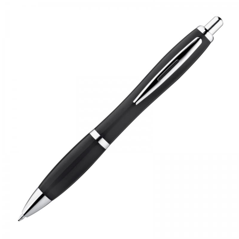 Klasyczny długopis plastikowy z metalowym klipsem i dużym, niebieskim wkładem.