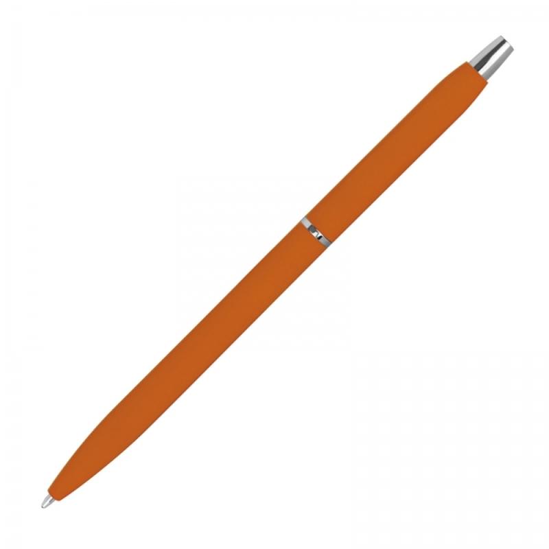 Metalowy długopis o gumowanej powierzchni ze srebrnymi akcentami. Posiada wkład piszący na czarno.