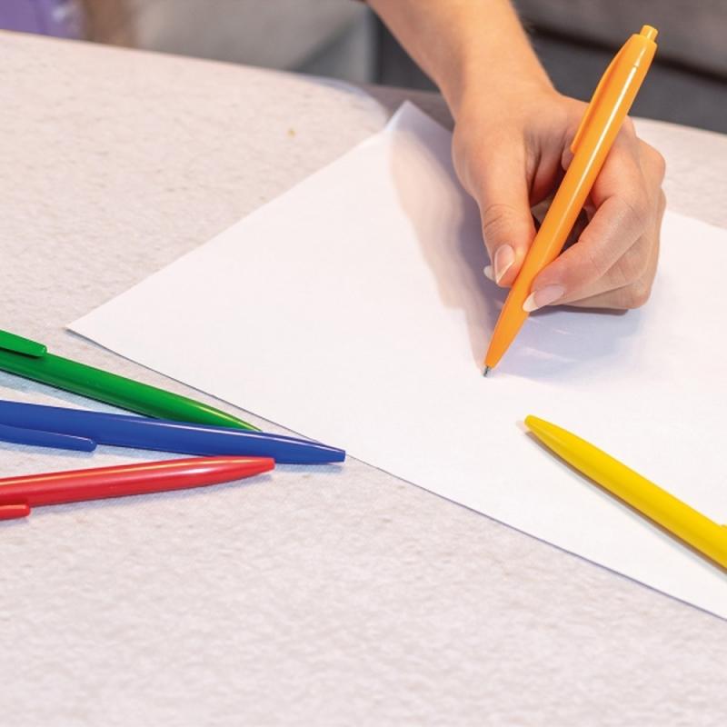 Długopis wykonany z plastkiu z wkładem piszącym na niebiesko.