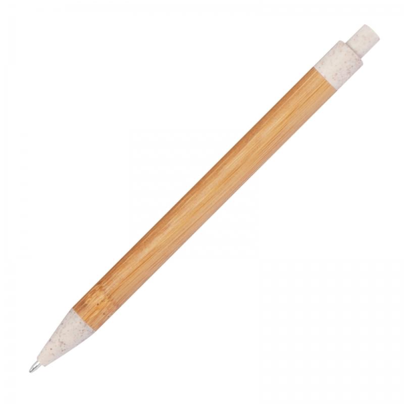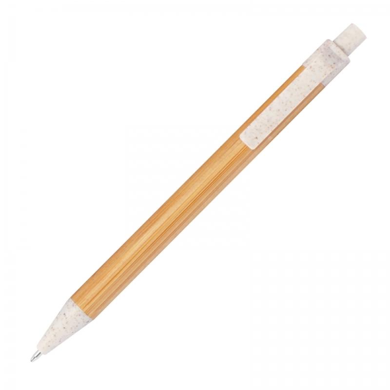 Długopis wykonany z bambusa z kolorowymi elementami wykonanymi z włókna pszenicznego. Posiada klikany mechanizm i wkład w kolorze niebieskim.