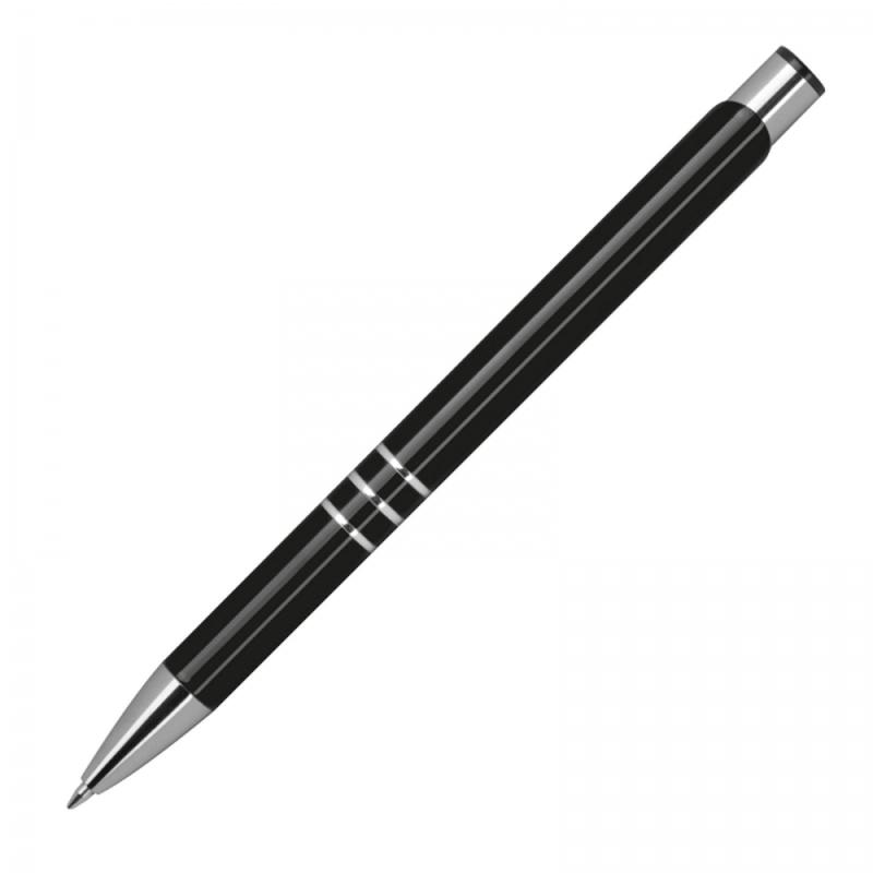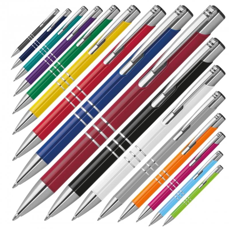 Klasyczny długopis metalowy z chromowanymi elementami i smukłym klipsem. Długopis wyposażony w duży niebieski wkład.