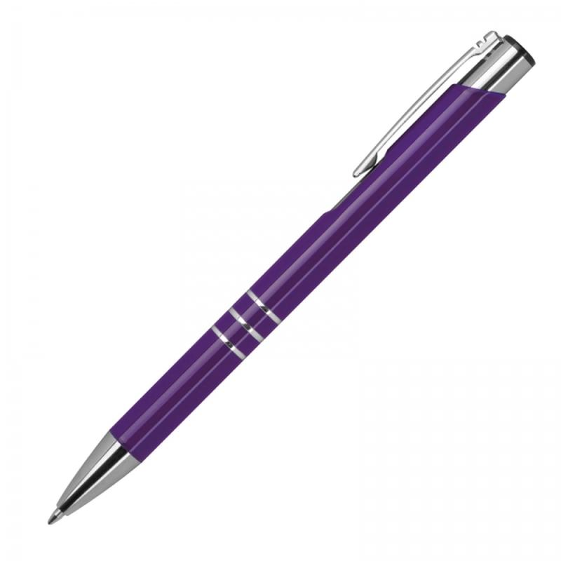 Klasyczny długopis metalowy z chromowanymi elementami i smukłym klipsem. Długopis wyposażony w duży niebieski wkład.