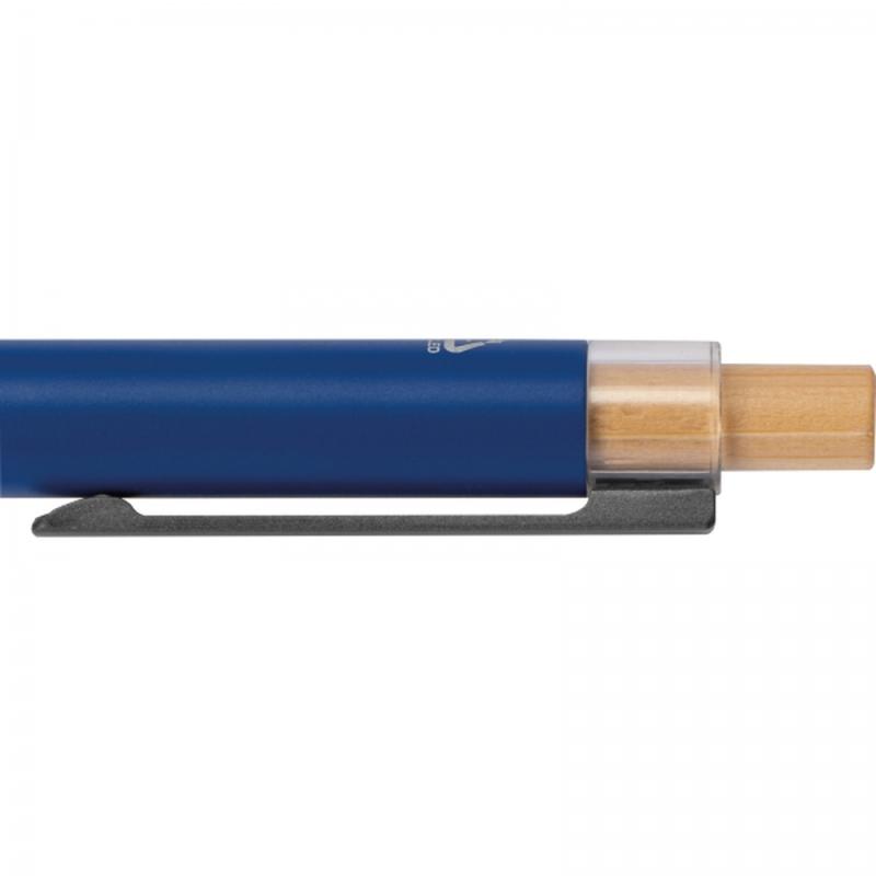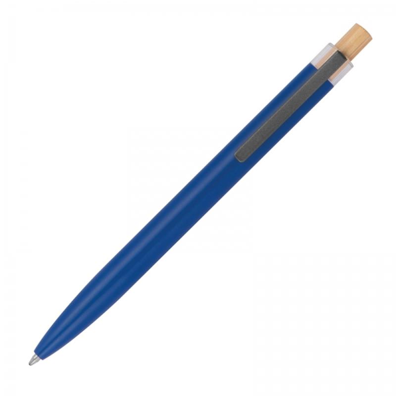 Długopis wykonany z aluminium pochodzącego z recyklingu, z niebieskim wkładem i bambusowym przyciskiem. Długopis wykonano z solidnego materiału, a dzięki odpowiedniemu ciężarowi, jest wyjątkowo wytrzymały i dobrze wyważony w dłoni. Powłoka długopisu gładka w dotyku, matowa.