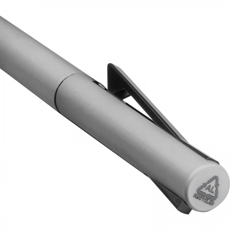 Długopis piszący na niebiesko, z półżelowym wkładem, wykonany z aluminium pochodzącego z recyklingu. Powierzchnia długopisu matowa.