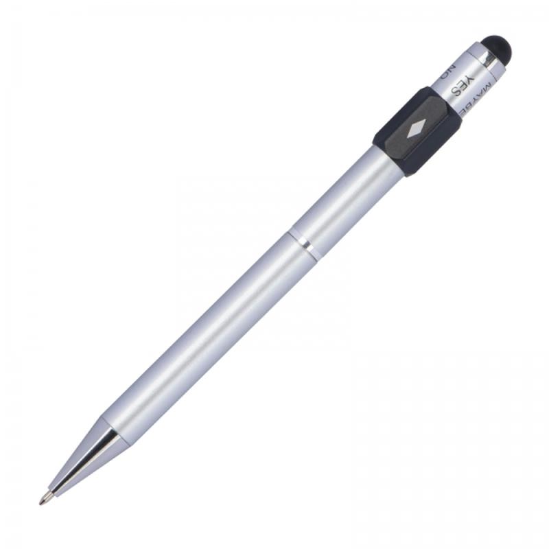 Długopis, który zdecyduje za Ciebie. Zadaj pytanie, zakręć obrotowym elementem i wylosuj odpowiedź. Długopis wykonany z metalu, piszący na niebiesko.
