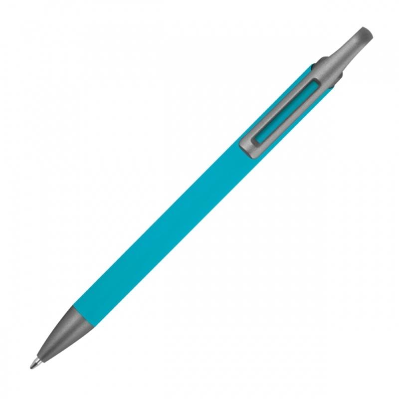 Długopis soft touch, wykonany z aluminium pochodzącego z recyklingu, z półżelowym wkładem piszącym na niebiesko, z końcówką 0,5 mm.