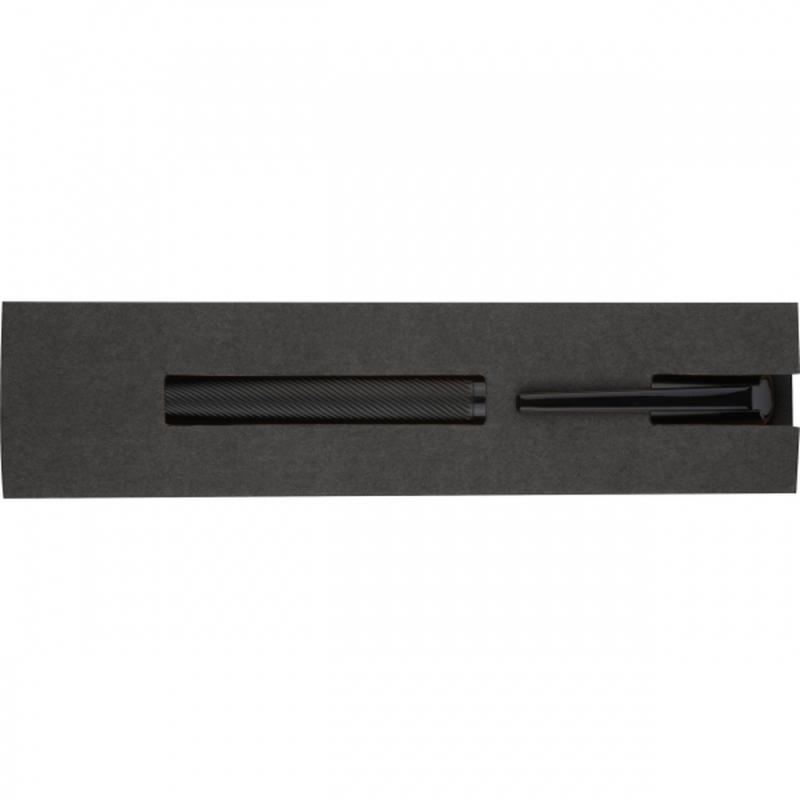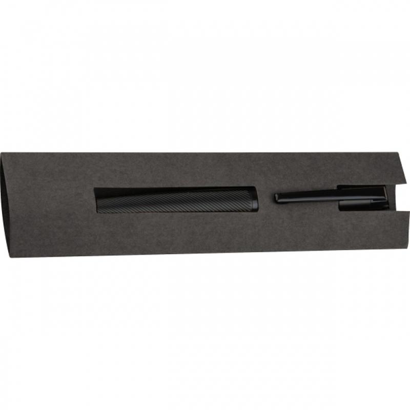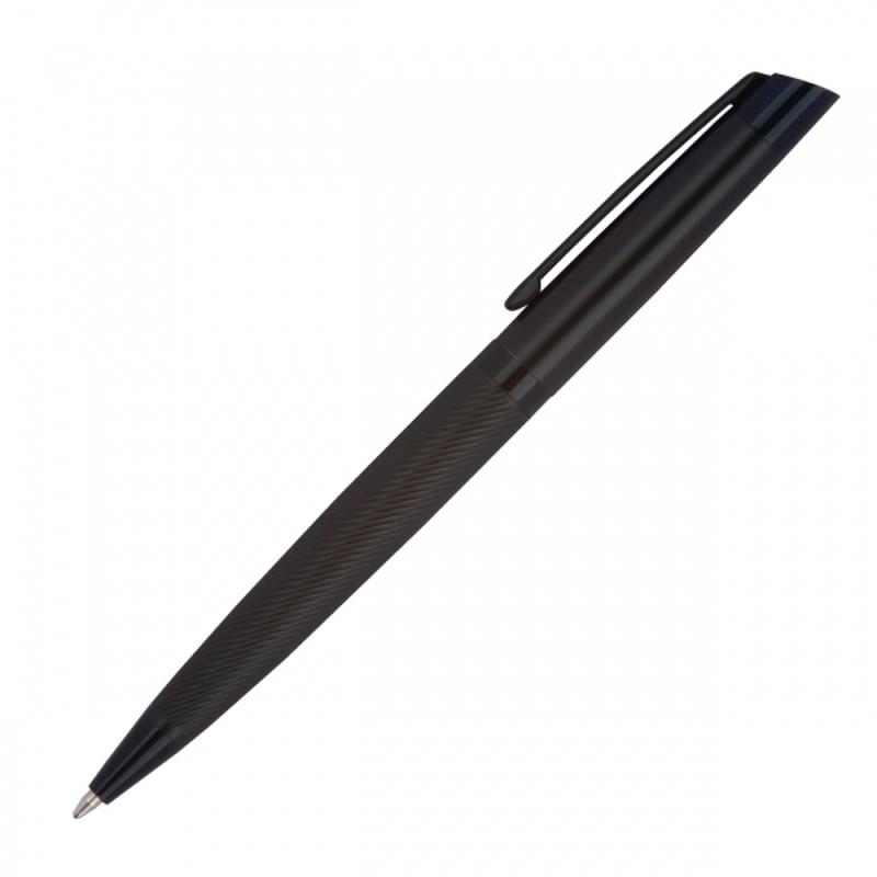 Matowy, przekręcany długopis, wykonany ze stali nierdzewnej, posiada wkład piszący na niebiesko.