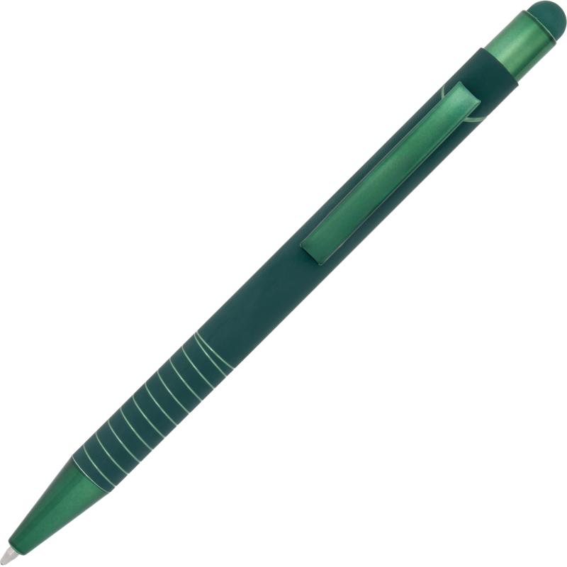 Długopis z końcówką do ekranów dotykowcyh touch-pen. Posiada błyszczące, lustrzane wykończenie.