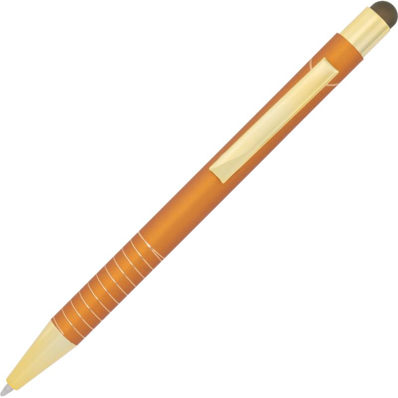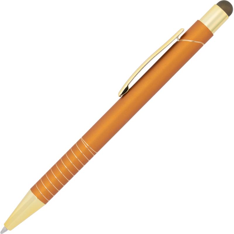 Długopis z końcówką do ekranów dotykowcyh touch-pen. Posiada błyszczące, lustrzane wykończenie.