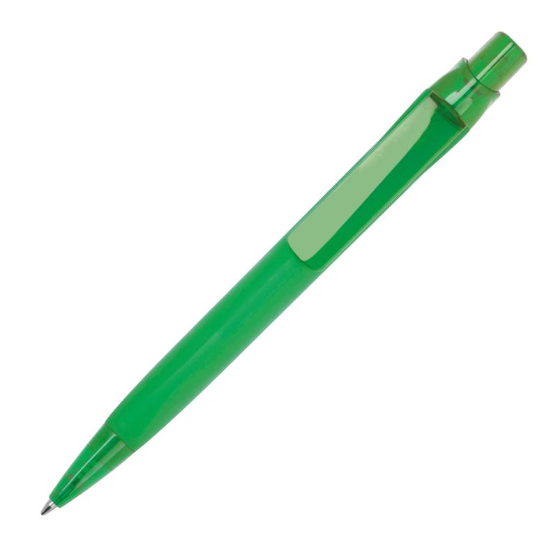 Plastikowy długopis z gumową powłoką i niebieskim wkładem (o długości pisania 800 m).