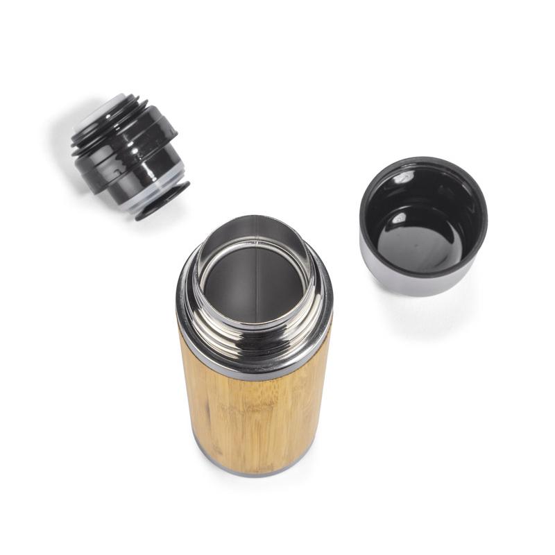 Termos BAMBI to produkt zarówno estetyczny wizualnie jak i solidny oraz funkcjonalny. Dzięki próżni między ściankami utrzymuje temperaturę do 12 godzin. Wykonany jest ze stali nierdzewnej o podwyższonym standardzie, warstwa zewnętrzna to naturalny bambus idealnie dopasowany do stali.