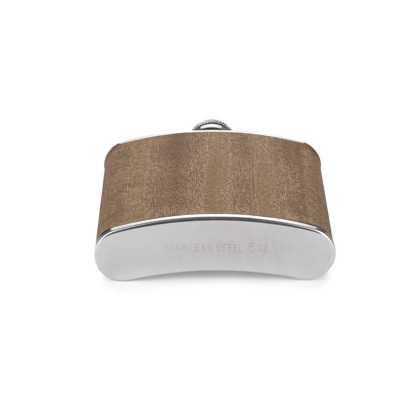 Piersiówka ze stali nierdzewnej o pojemności 200 ml z bezpiecznym zamknięciem. Wykończona jest bardzo cienką warstwą naturalnego drewna.