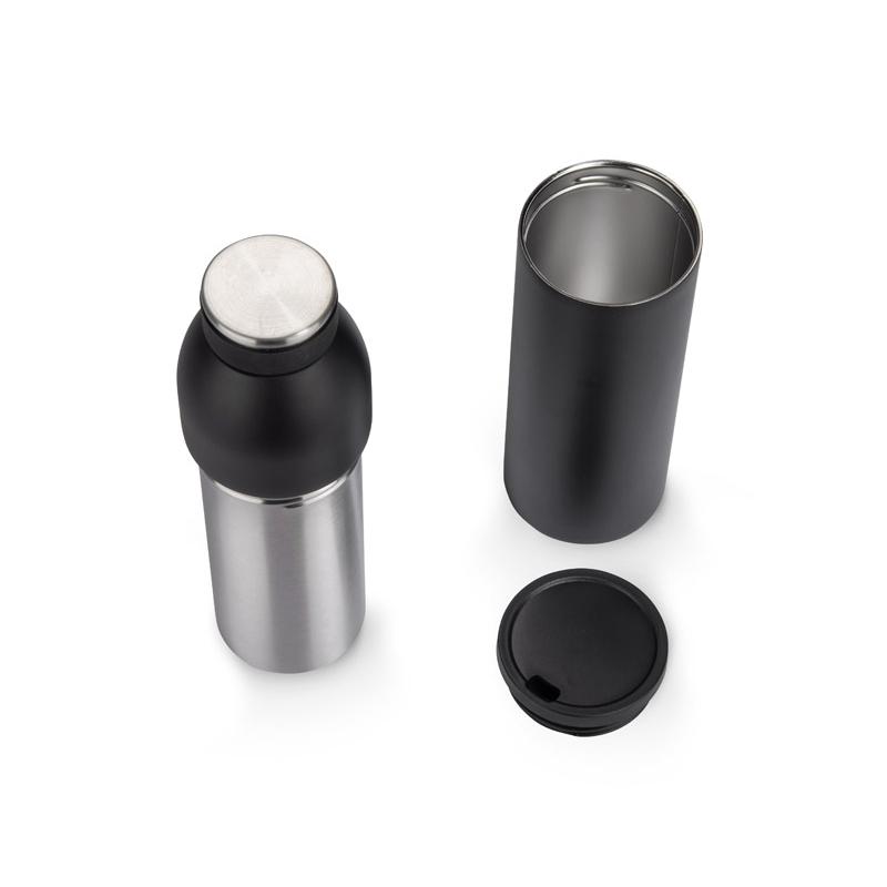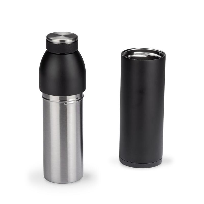Butelka termiczna DUAL o pojemności 600 ml to rozwiązanie, które zachwyci miłośników praktycznych i oryginalnych gadżetów reklamowych. Jej unikalną cechą jest odkręcane dno, które zamienia się w dodatkowy kubek o pojemności 400 ml z możliwością zamknięcia. Możesz korzystać z napoju bezpośrednio z butelki, przelać go do kubka, a nawet podzielić się z drugą osobą. Skorzystaj z usługi znakowania i spraw, aby butelka DUAL stała się wyjątkowym nośnikiem Twojej reklamy.