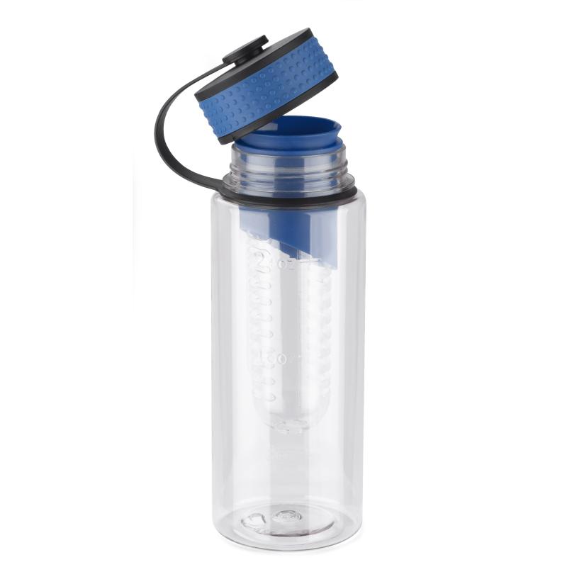 Bidon posiadający wkład na owoce. Pojemność 800 ml. Wykonany z tritanu. Zapakowany w woreczek biodegradowalny.