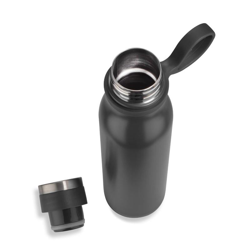 Butelka GRAVI o pojemności 480 ml jest elegancka i wytrzymała. Wykonanie ze stali nierdzewnej sprawia, że napój pozostaje w odpowiedniej temperaturze na dłużej. Dzięki swojemu smukłemu kształtowi, butelka GRAVI doskonale mieści się w dłoni. Butelka GRAVI to ekologiczne rozwiązanie, które pozwala uniknąć używania jednorazowych plastikowych butelek, dbając jednocześnie o środowisko.