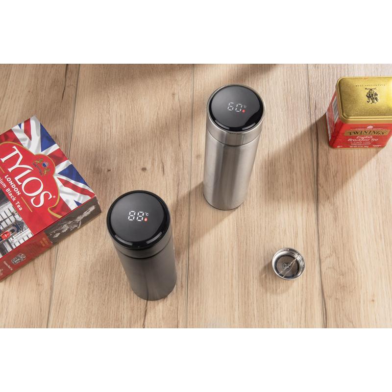 Butelka LEDIKT to bardzo gadżet zdecydowanie wart uwagi. Posiada wbudowany w nakrętce termometr wskazujący temperaturę napoju w stopniach Celsjusza. Wystarczy obrócić butelkę do góry dnem na 10 sekund aby odczytać dokładną temperaturę. Wewnątrz znajduje się sitko, dzięki któremu możemy zaparzyć herbatę. Butelka prezentuje się elegancko i nieszablonowo. Idealnie dopasowana do dłoni oraz przyjemna w dotyku. Wykonana ze stali nierdzewnej. Butelka wyposażona jest w wymienną baterię litową 3V.