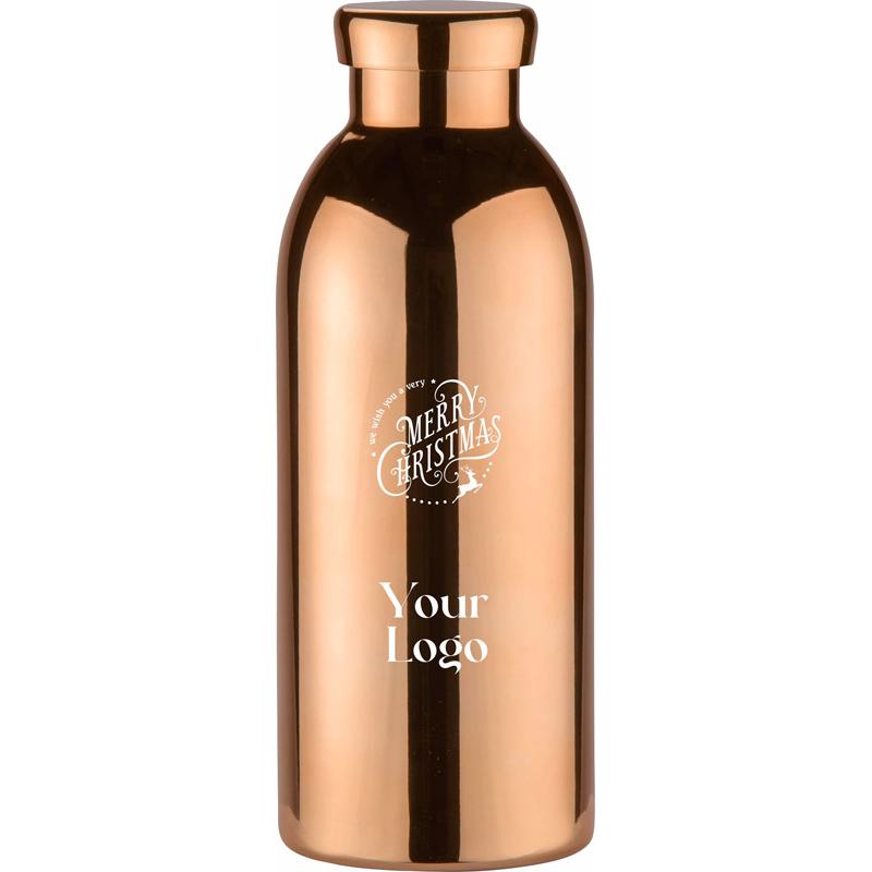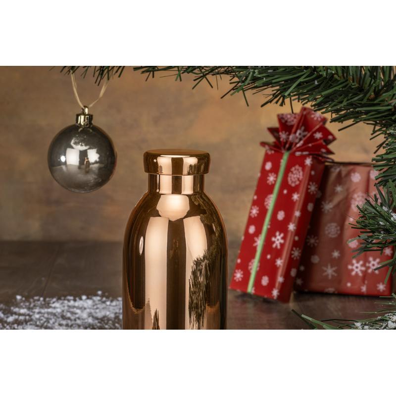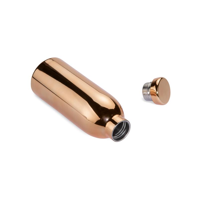 Butelka stalowa NEL w kolorze różowego złota to produkt klasy premium, który łączy elegancję stylu glamour z najwyższą funkcjonalnością. Lustrzany efekt powierzchni dodaje jej wyjątkowego blasku i nowoczesnego wyglądu. Butelka NEL jest wykonana z wysokiej jakości stali nierdzewnej, co zapewnia jej trwałość i odporność na uszkodzenia. Dzięki zaawansowanej izolacji termicznej, utrzymuje temperaturę zimnych napojów do 24 godzin, a ciepłych do 12 godzin. Co więcej, butelka charakteryzuje się neutralnym śladem węglowym, co czyni ją wyborem przyjaznym dla środowiska.