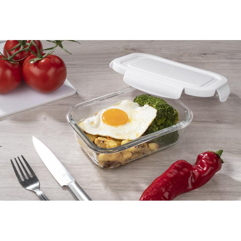 Pojemnik na żywność LASO wykonany jest z wysokiej jakości szkła borokrzemowego, innymi słowy żaroodpornego. Pojemnik posiada białą przykrywkę z tworzywa zamykaną na cztery zaczepy. Można go stosować jako pojemnik lunchowy, jako pojemnik do przechowywania żywności, a ponadto można w nim podgrzewać potrawy w piekarniku. Pojemność 500 ml.