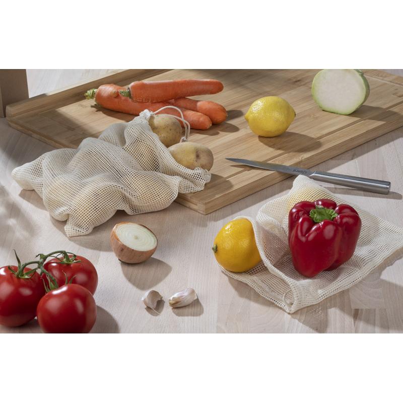 Zestaw worków wielorazowych GREENS to rozwiązanie niezwykle pomocne w codziennych zakupach. Worki są niezbędne dla wszystkich, którzy są przyjaźni środowisku i nie chcą zwiększać zużycia plastiku. W zestawie znajdują się 2 worki w różnych rozmiarach wykonane z bawełny. Posiadają sznurek, który służy do ściągnięcia worka. Zestaw jest ekologicznie zapakowany w papierową rolkę.