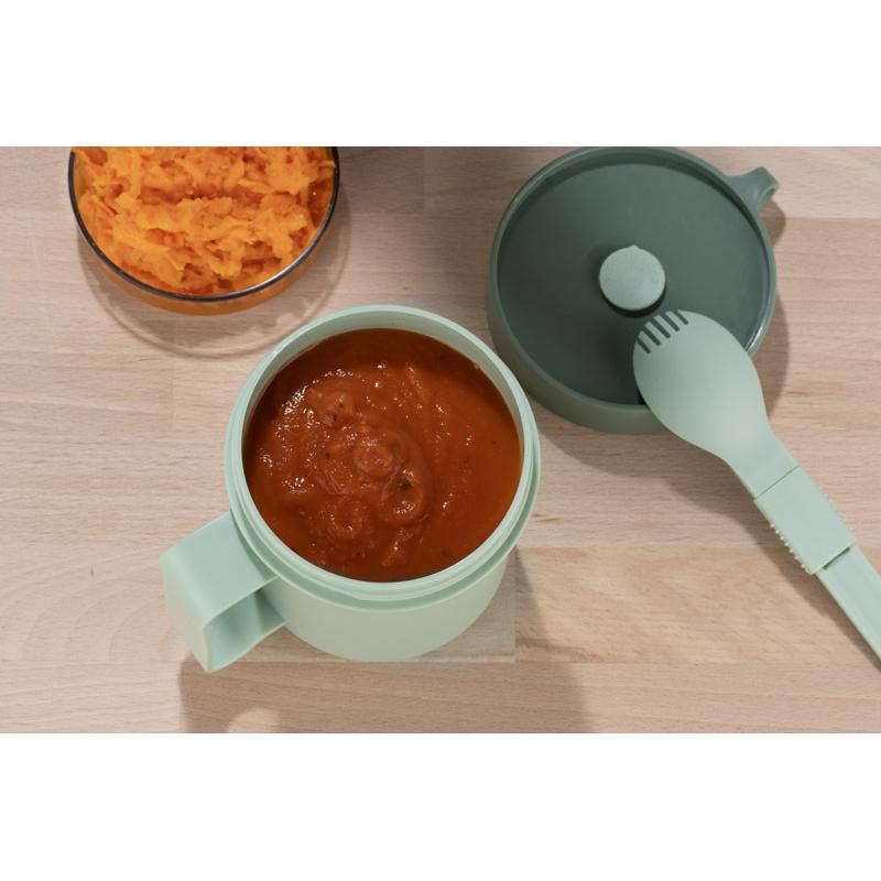 Pojemnik na zupę NODSY to przydatny i praktyczny gadżet. To znakomite rozwiązanie aby zabrać ze sobą zupę na przykład do pracy. Posiada wygodny uchwyt i dołączony składany łyżko-widelec. Pojemnik nadaje się do użycia w kuchenkach mikrofalowych, zmywarkach a także można w nim mrozić. Pojemność 500 ml.