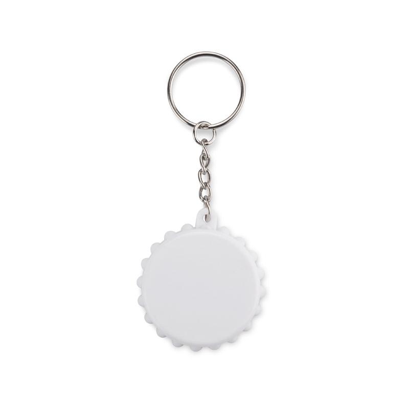 Brelok KAPSI w kształcie kapsla. Pełniący funkcję otwieracza brelok to praktyczny i stylowy dodatek, który zapewnia łatwe otwieranie butelek w dowolnym miejscu.
