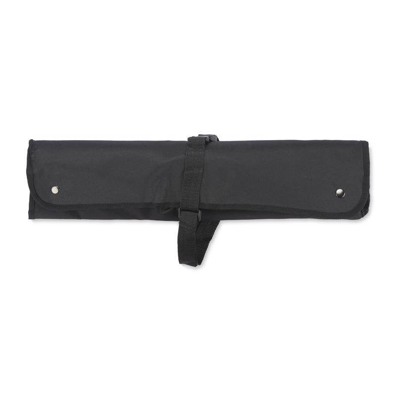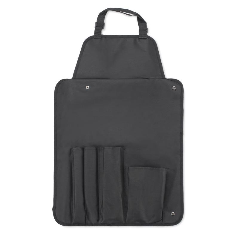 Zestaw narzędzi do grillowania w komplecie z rękawicą oraz fartuchem, który pełni także rolę etui. Zestaw składa się z najbardziej potrzebnych przy grillowaniu przyrządów: szczypiec, widelca i łopatki. Fartuch ochroni odzież przed plamami, a rękawica zabezpieczy przed oparzeniami.