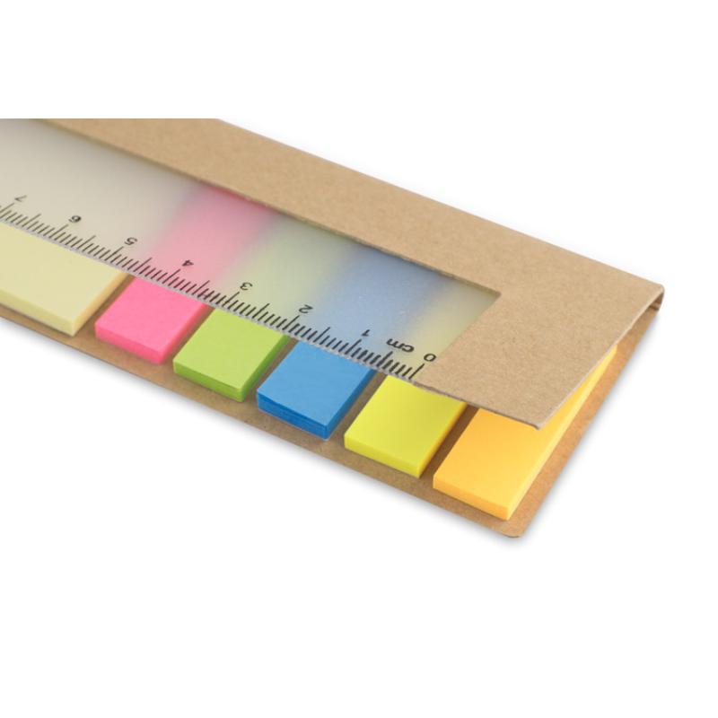 Podręczny zestaw składający się z kolorowych karteczek samoprzylepnych i linijki. Niezbędny na każdym biurku.