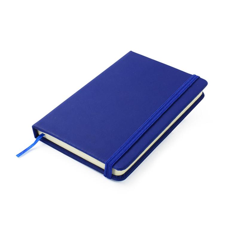 Gustowny notes A6 z kolorową gumką wykonany z materiału skóropodobnego (PU). Notes zawiera 80 kartek ecru w linie koloru pomarańczowego. Logo nadrukujemy na okładce.