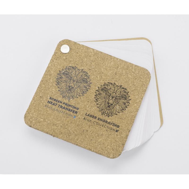 Notes zawierający 60 białych kartek może także posłużyć jako korkowa podstawka pod kubek. Logo możemy nadrukować na powierzchni korkowej i tekturowej.