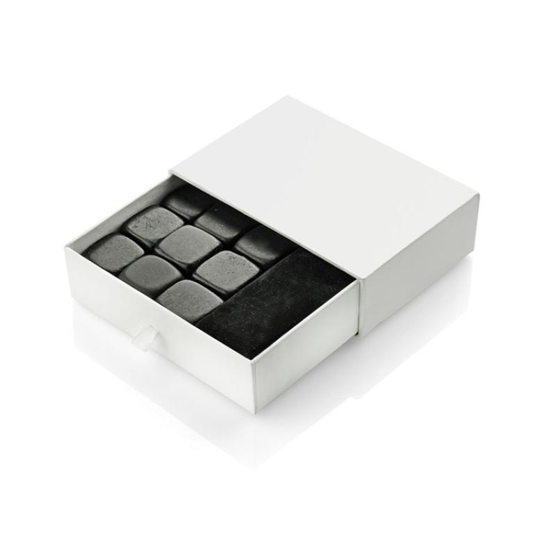 Kamienie do whisky - zupełna nowość na rynku - gadżet dla wymagających klientów, w szczególności dla koneserów whisky. Ten zestaw 9 specjalnych kamieni zastępuje kostki lodu. Kostki należy umieścić na minimum 4 godziny w zamrażalniku, aby uzyskały pożądaną temperaturę. Po wyjęciu można ich użyć zamiast kostek lodu. Najważniejsze zalety tego rozwiązania w porównaniu do kostek lodu to: nie rozcieńczają napoju, można je wykorzystać wielokrotnie, są niezwykle oryginalne. Kostki wykonane są z naturalnego bazaltu. Produkt posiada atest dopuszczający do kontaktu z żywnością.