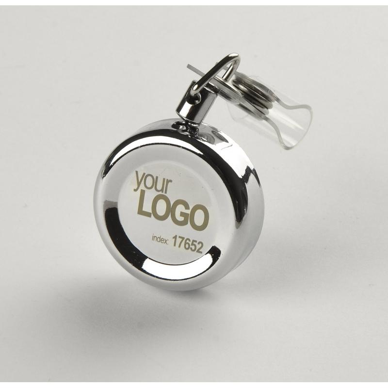 Skipass VIP to wytrzymały i elegancki produkt - wykonany jest z metalu, a jego średnica to 3,2 cm. Posiada mocowanie w postaci metalowego klipsa. Elastyczna linka o długości ok. 70 cm zakończona jest uchwytem na karnet. Znakowanie jest możliwe na metalowym korpusie.